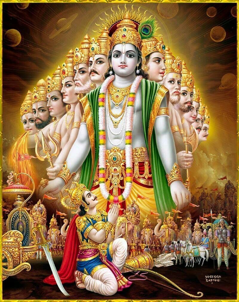Kṛṣṇa manifestiert vor Arjuna seine universale Form – beschrieben in Bhagavad Gītā Kapitel 11