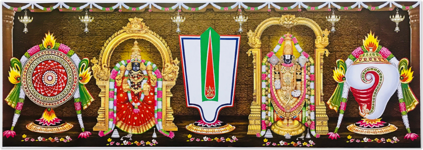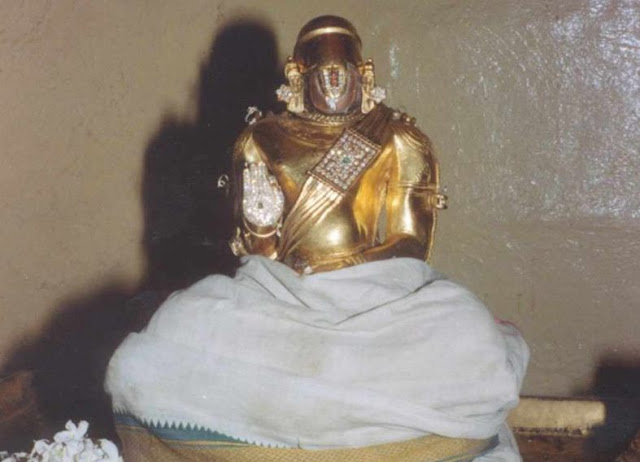 The darshan of Lord Veṅkaṭēśvara, the deity of one of the most important Viṣṇu temples in India. This temple is called Tirumala Venkateswara Temple and located in Tirupathi, about 130km north of the region where the Āḻvārs were born. The temple is on the Tirumala hill, which is itself a very sacred place. Because of this, the Āḻvārs walked to the hill but hesitated to step on it. Hence, Lord Veṅkaṭēśvara came down from the hill have his darshan at the place where they were. Some say that the old name of a pond at the hill – Āḻvār Theertham (nowadays usually called Kapila Theertham) – refers to this.